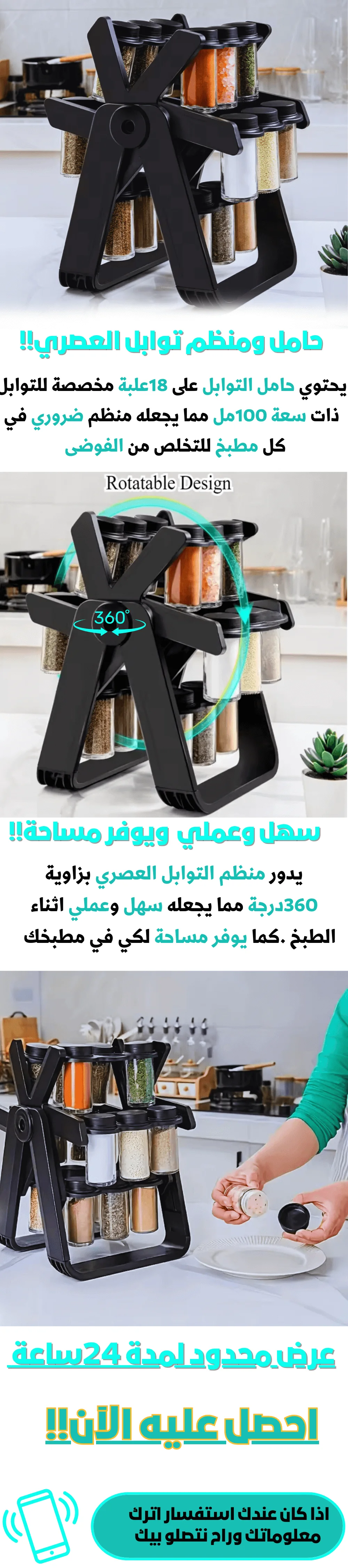 منظم التوابل الدوار 360° +18 علبةضمان من الشركة🖐️📣